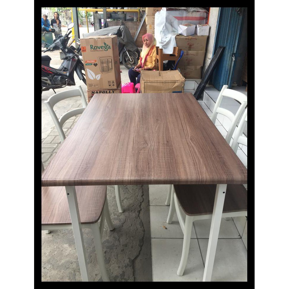 Daun meja panjang 120cm lebar 80cm tebal 2cm kaki meja panjang 100cm lebar 66cm tinggi 73cm ukuran total tinggi 120 cm lebar. Egrofurniture meja makan 4 kursi makan cardova dark brown. Beli meja makan 4 kursi online berkualitas dengan harga murah terbaru 2020 di tokopedia. Set kursi meja makan ala cafe jati.
